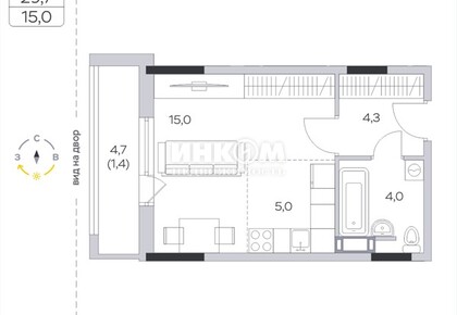 Студия, 27.9 м², этаж 4/9