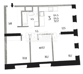 3-комнатная квартира, 64.6 м², этаж 7/22