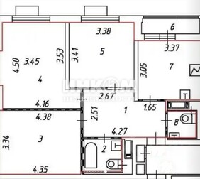 3-комнатная квартира, 68.1 м², этаж 6/9