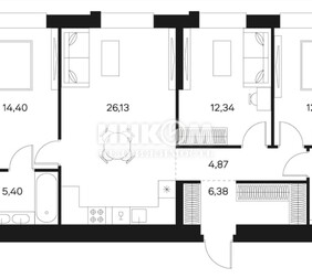 3-комнатная квартира, 86.6 м², этаж 16/20