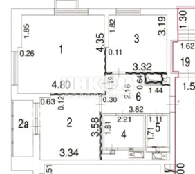 3-комнатная квартира, 58.2 м², этаж 1/5