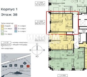 2-комнатная квартира, 44.39 м², этаж 15/24
