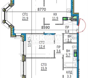 Вашему вниманию предлагается большая светлая евро-трехкомнатная...
