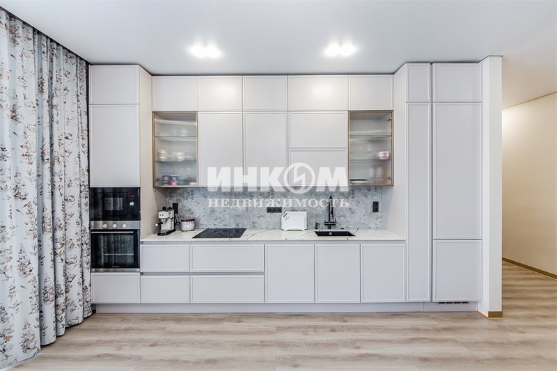Номер лота: нп-0024804. Предлагается к покупке одноэтажный коттедж в КП Классик в 25 км от МКАД по Ярославскому шоссе, на участке 8,5 соток. Экологически благоприятное живописное место, окруженное лесными массивами. В доме выполнен эксклюзивный дизайнерский ремонт с использованием качественных строительных материалов. Просторная кухня-гостиная 26,4 кв.м. с выходом на террасу. Кухня Мария (натуральный массив ясеня, столешница-кварцевый агломерат) оборудована встроенной техникой, включая посудомоечную машину и измельчитель мусора. Обеденный стол- массив дуба. Спальня с гардеробной и просторным санузлом. Вторая спальня с гардеробной комнатой. Гардеробные системы типа Elfa. Большой санузел (ванна Ам.рм.) в общей зоне. Вся сантехника европейских производителей. Техническая комната-постирочная. Тёплый пол по всему дому, покрытие кварцвинил премиум, толщина 9 мм. Стены-штукатурка. Дом продаётся полностью меблированный. На участке выполнен ландшафтный дизайн. Площадка для двух автомобилей. Хозяйственная постройка. В соседних домах сделаны ремонты, семьи проживают. Коттеджный посёлок выполнен в едином стиле, все дома одноэтажные. Закрытая охраняемая благоустроенная территория, имеется детская площадка, магазин Пятерочка. Хорошая транспортная доступность.